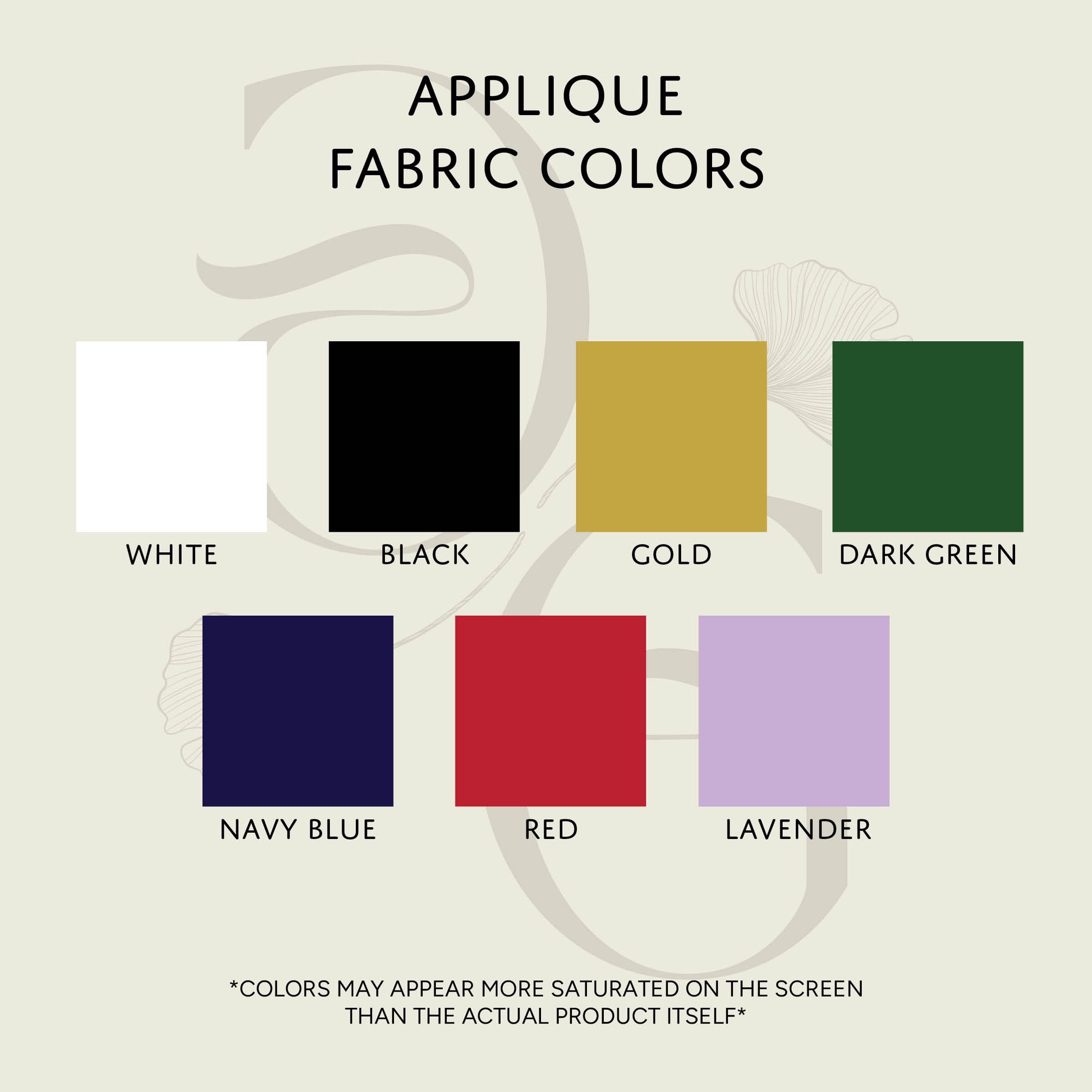 - Specify order/location of fabric color (i.e. - white in back, blue in front)