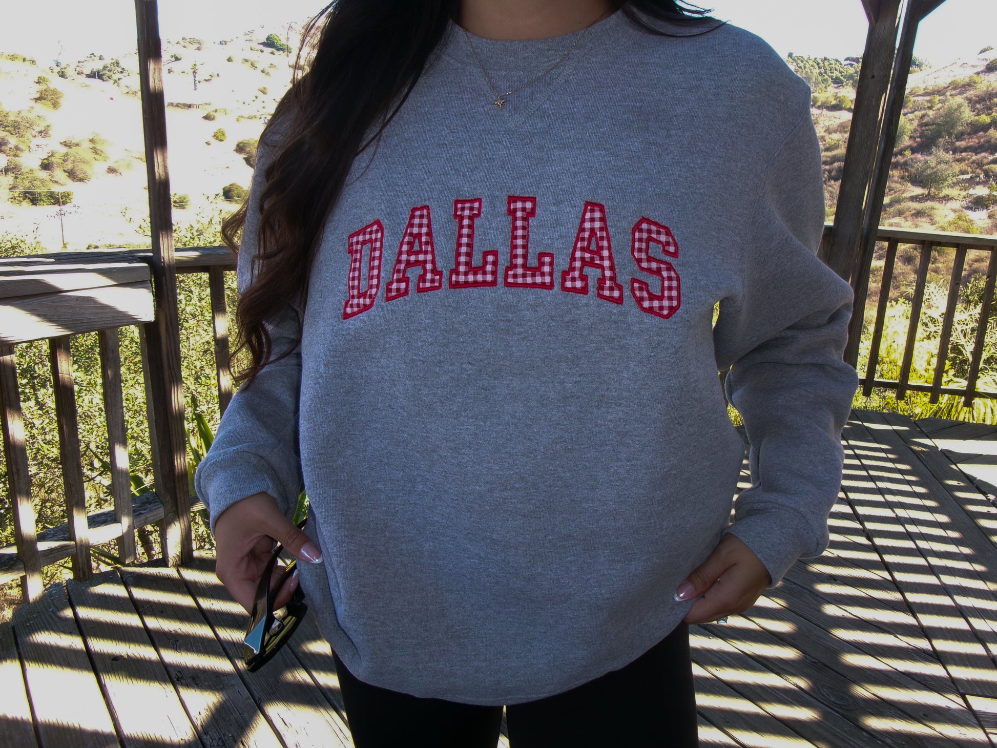 The Bailey (Classic Crew) - Custom gingham varsity lettering with an embroidered outline on a cozy crewneck.